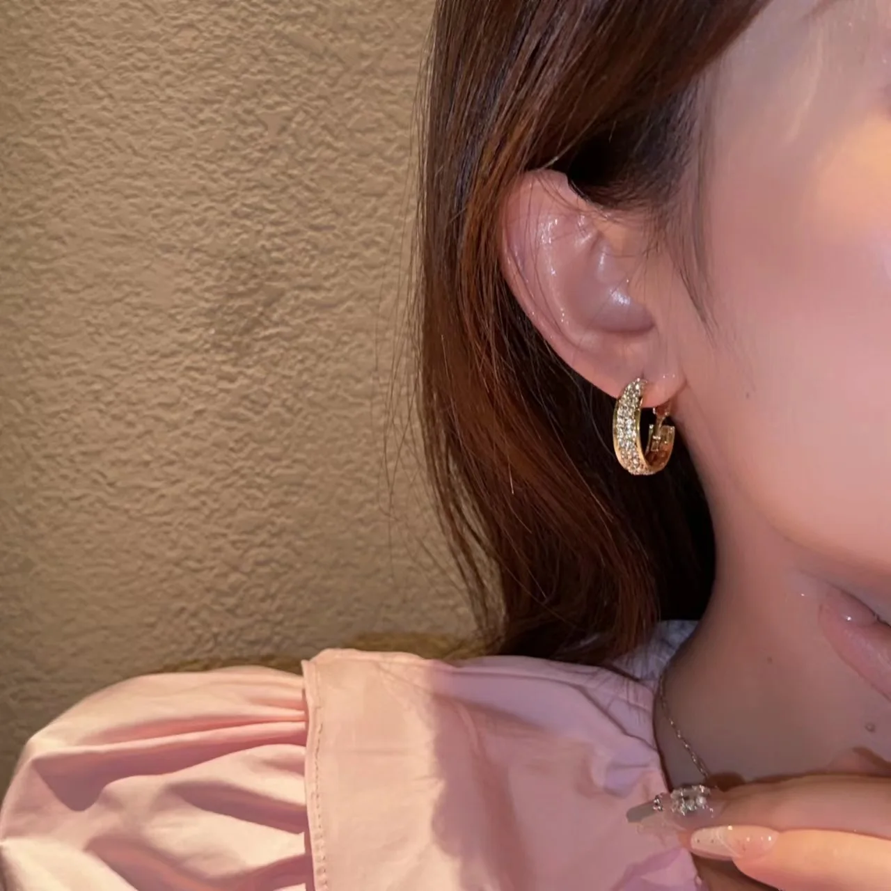 Trendy round hoop earrings adorned with sparkling cubic zirconia for a modern, stylish shine. Crafted from durable stainless steel, they combine fashion-forward design with lasting elegance.